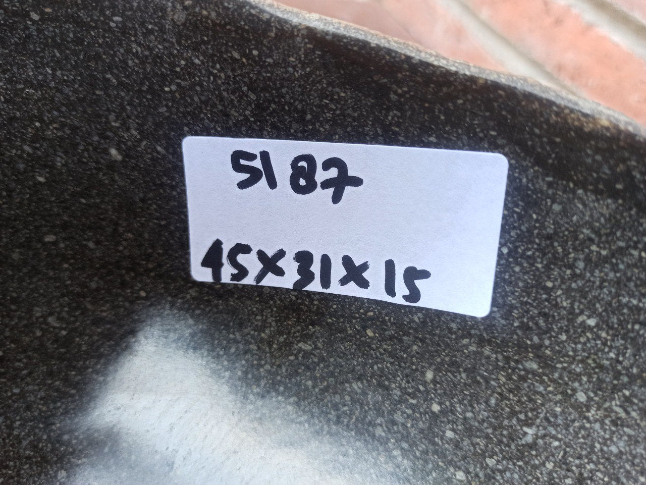 This handcrafted oval river stone sink showcases a deep graphite-gray polished interior with a naturally textured exterior. The smooth organic curves highlight the natural beauty of real stone, bringing warmth and elegance to any bathroom.