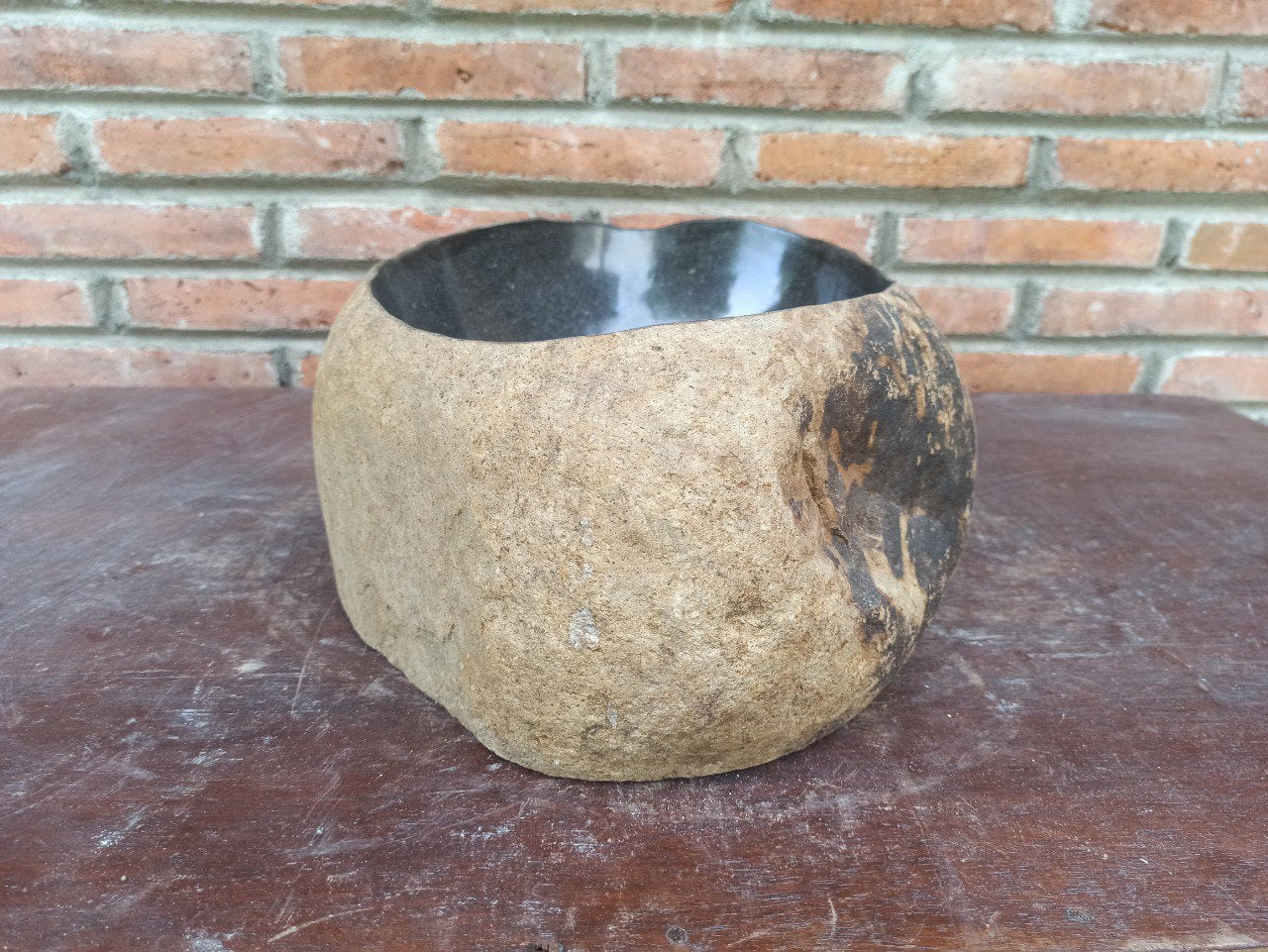 • Carved from a single river boulder